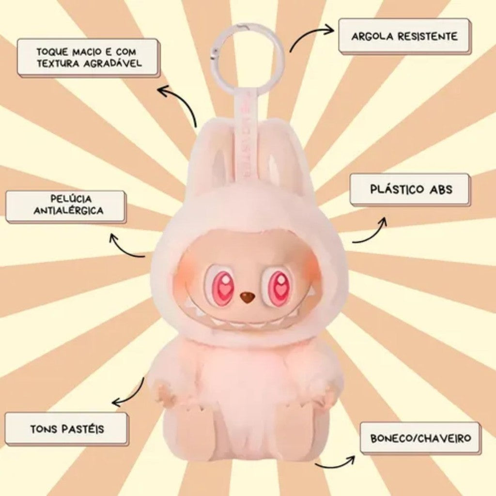 Chegou o item que todo mundo ama: o Boneco Pelúcia Labubu Chaveiro!